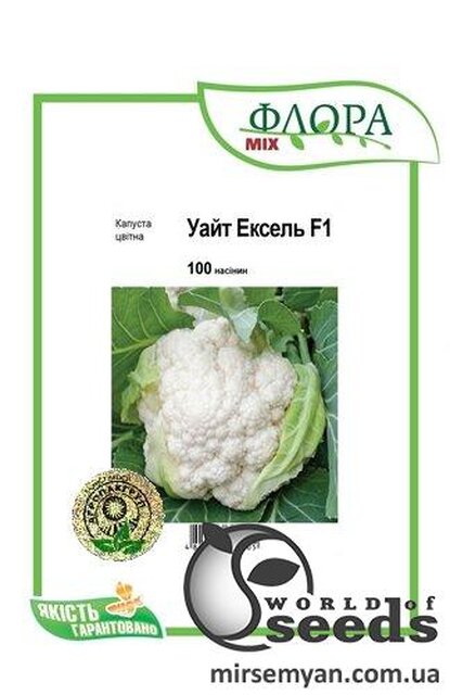 Уайт Ексел F1 – гібрид цвітної капусти від компанії Sakata. Висока врожайність. Період вегетації – до 70 діб. Гібрид компактний, добре переносить підвищену вологість. Головки мають прекрасний зовнішній вигляд, однорідні, добре закриті укривним листям, щільні, форма - куляста, колір - білий, вага - від 2,5 до 3 кг. Має стійкість до підвищеної вологості, хвороб та весняних заморозків. Призначається для вирощування у відкритому ґрунті та під плівкою. Підходить для здобуття другого врожаю.