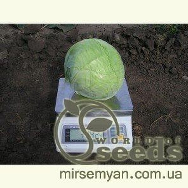 Призначення. Для тривалого зберігання (до червня). Якість плоду. 2,5-3,5 кг. Дуже щільні. Не мають внутрішніх порожнин. Ніжні текстури. Коротка внутрішня кочерига. Білий. Рослина. Для літньо-осіннього вирощування. Особливості. Універсальний. Дуже вирівняний. Чудово стоїть у полі. Стійкість. Толерантний до трипсів.