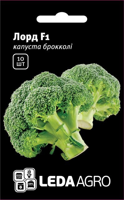 Лорд F1, Дуже ранній гібрид. Дозріває через 60 – 65 днів після пересадки. Рослина середньої сили зростання, з міцним стеблом. Формує однорідні голівки відмінної якості. Колір качана темно-зелений. Рекомендований для отримання ранньої продукції, а також для вирощування в осінньо-літній період. Прекрасний високопродуктивний гібрид універсального призначення - використовується для заморозки, а також у свіжому вигляді, при вирощуванні на присадибних ділянках.