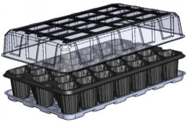 Зручний міні парник, що використовується для більш прискореного вирощування насіння завдяки парниковому ефекту, який утворюється при використанні прозорої кришки, що йде в комплекті з даними касетами. Дані касети легко чистяться і можуть використовуватися неодноразово, а піддон мінімізує витрати на прибирання приміщення в якому вирощується розсада, так як надлишки ґрунту та води не випливають з нього. ;n Утворює парниковий ефект. Підходить для всіх видів культур. Паростки розвиваються в окремих осередках, що виключає переплетення кореневої системи розсади. Компактні касети не займають багато місця.\ ;n Перед висадкою розсади та насіння слід попередньо підготувати субстрат або ґрунт, а також можна використовувати торф'яні таблетки по одному на кожну комірку. У порожні осередки рівномірно викласти грунт і після висадити насіння або розсаду і рясно полити водою, після чого накрити кришкою і поставити в місце, що освітлюється, переважно біля вікон куди проникає сонячне світло.