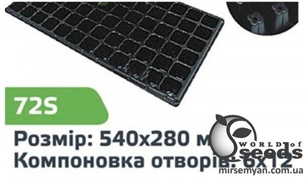 Касета для розсади 72S, 540*280мм на 72 осередки(6*12) виготовлена з якісного полістиролу. Касети багаторазова, термін придатності складає 5 років. Дозволяє отримувати дружні сходи та рівномірне зростання, окремі кореневі системи саджанців. Матеріал з якого виготовлена касета не містить хлору, полівінілу та інших токсичних складових і є абсолютно безпечним для людини та навколишнього середовища.