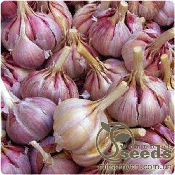 Чудовий сорт з фіолетовою шкіркою з великими білими зубцями та м’яким смаком, який легко зберігати та розділяти для приготування. (в середньому 6-9 великих зубчиків на цибулину)
