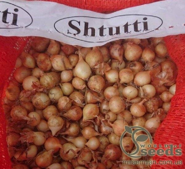 Цибуля Shtutti (Цибуля Штутті) - середньоранній, дуже популярний, високоврожайний сорт озимої цибулі. Цей сорт голландської селекції. Цибулини досить великі, округлі, одногніздні з жовто-коричневою лускою. Середній розмір складає 120-160 г. Врожайність дуже висока.