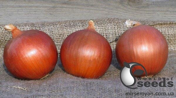 Цибулина округла, середнього розміру, висока якість луски темно-коричневого кольору.
