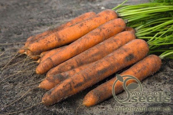 Пізній, циліндричний гладкий гібрид сортотипу Нантський. Чудово підходить для механічного збирання. Високоврожайний гібрид, що виробляє коренеплоди з відмінною вирівняністю та стійкістю до ламання. Придатний для тривалого зберігання. Зростання днів від посіву: 130; Вага, гр: 100-200; Лежкість: +++; Норма висіву, млн/га: 1,0-1,6.