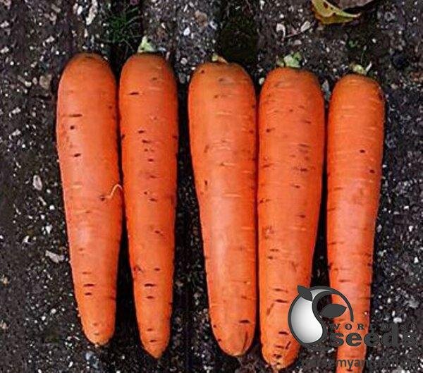 Гібрид моркви типу Берлікум. Вегетаційний період – 110-120 днів. Використовується для свіжого споживання та переробки. Характеристика плодів – Коренеплоди циліндричної форми, привабливого однорідного насиченого помаранчевого кольору зовні та всередині. Розмір – 20-25 см, діаметр – 3-4 см. Дуже вирівняні великі товарні коренеплоди. Високий вміст сухих речовин, каротину, цукрів, солодкий смак. Міцне бадилля. Стійка до захворювання на листовий апарат, до стрілкування. Придатний для тривалого зберігання, не втрачаючи товарного вигляду (5-6 місяців). Характерний високий урожайний потенціал. Добре транспортується.