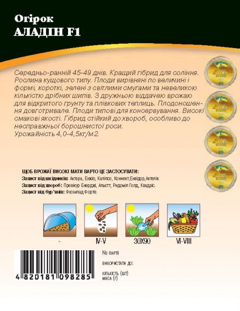 World of Seeds ukraine Упаковка МініТермін дозрівання СередньораннійКолір ЗеленийВиробник World of SeedsОгірок "Алладін" 4г. WoS