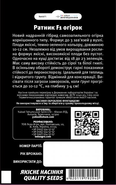 turkey Упаковка МініТермін дозрівання УльтрараннійКолір ЗеленийВиробник Yüksel Seeds (Туреччина)Огірок "Ратник" F1 10 семена L (Yuksel Seeds)