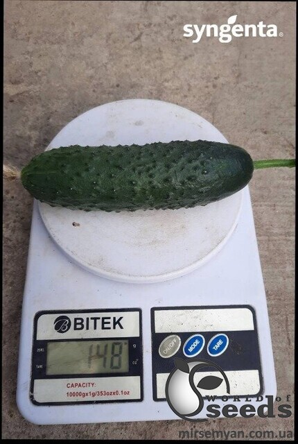 Ранній партенокарпічний огірок. Від сходів до початку плодоношення 35–40 днів у літній, 45–55 днів у ранньовесняний періоди. Плоди привабливого темно-зеленого забарвлення, мають характерний традиційний смак «польового» огірка, довго зберігають пелюстки. Рослина збалансованого типу розвитку, швидко формує вегетативну масу і вступає в плодоношення. Висока товарність плодів. Призначений для вирощування у відкритому грунті, плівкових Висока стійкість до борошнистої роси (Px), кладоспоріозу (Ccu) та вірусу огіркової мозаїки (CMV).