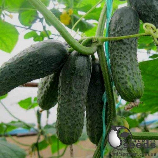 Ранній період вегетації 45 днів. Партенокарпічний гібрид огірка корнішонного типу. Відмінною особливістю є її стійкість до стресових умов вирощування та в'янення. Гібрид вирощується у скляних та плівкових теплицях, а також у відкритому грунті. Головне досягнення гібриду - це його висока та стабільна врожайність. Рослина потужна, освіта бічних пагонів середня. Плоди формуються темно-зеленого кольору, великогорчасті, генетично без гіркоти, не деформуються, не переростають і не стають бочкоподібними, співвідношення довжини до ширини плода становить 3,2 - 3,3:1. Неперевершені смакові якості. Гібрид стійкий до пероноспорозу, борошнистої роси, вірусу огіркової мозаїки.