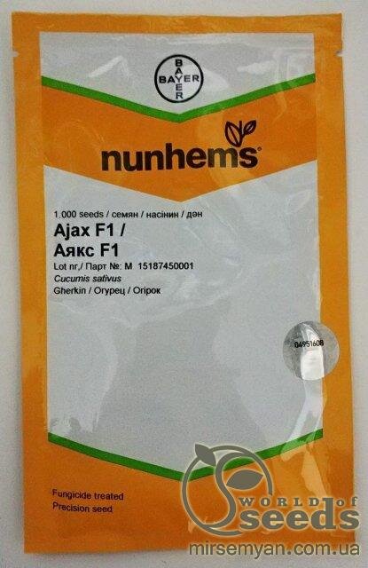 Упаковка ПрофТермін дозрівання УльтрараннійКолір ЗеленийВиробник NunhemsОгірок Аякс F1 1000 с. Нунемс (Nunhems)
