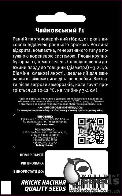 Упаковка МініТермін дозрівання РаннійКолір ЗеленийТип Самозапильні(Партенокарпік.)Виробник Rijk ZwaanОгірок Чайковський F1 10 семена Л