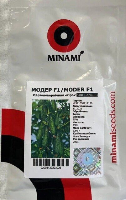 Модер F1 - сорт ультрараннього партенокарпічного гібридного огірка тип - корнішон з шикарною якістю плодів від компанії Мінамі. Підходить для ранніх посадок закритих і відкритих грунтів.