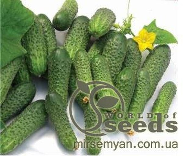 Плоди - красивого зеленого кольору, довжиною 9-12 см, формує однорідні огірки, горбкуваті, мають гарну внутрішню якість, ідеально підходять для переробки та свіжого ринку.