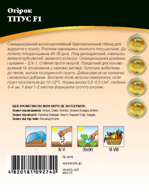 Огірок "Тітус F1" 4г. WoS