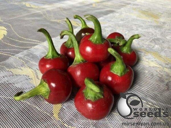 Глобус F1. Цікавий гібрид гострого перцю округлої форми. Належить до середньостиглого сегменту, вегетаційний період 70 днів після пересадки розсади на постійне місце зростання. Насіння гострого перцю Глобус F1 висівають у касети або ящики для розсади у тепличне приміщення. Рослина швидко розвивається, формує багато зав'язі. Плоди маленькі, середня вага перцю 15 г. Діаметр плода 2 – 2,5 см. У біологічній стиглості перцю червоного кольору.