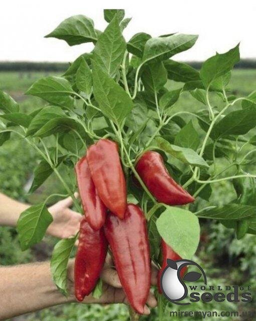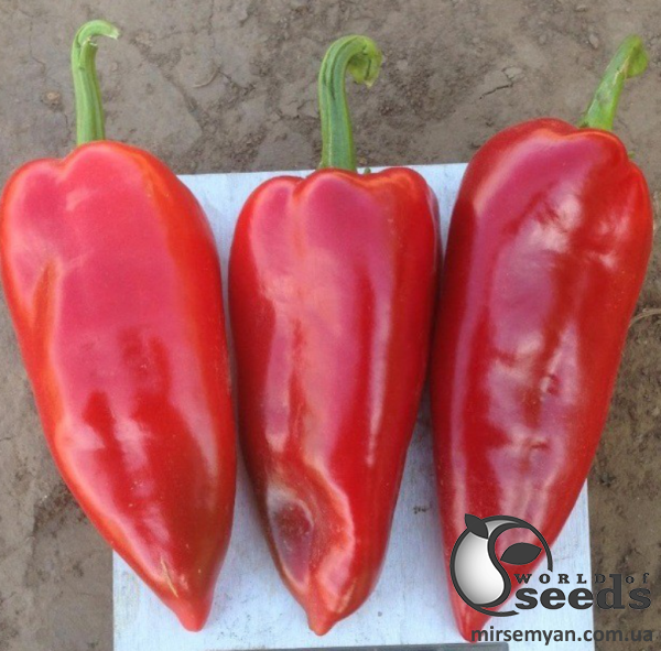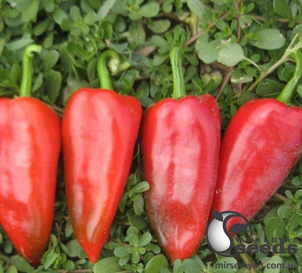 Призначення: для вирощування у теплицях, плівкових тунелях, відкритому ґрунті. Один з найкращих для свіжого ринку! Перший якісний продукт у супермаркеті. Якість плода: 70-80 г. 13х5, 5 см. Супер якість! Темно-зелений, насичено-червоний. Стінка середньо товста. Рослина: Компактна, висота 55-60 см. Одночасно формує 10 плодів, із них 6 дозрівають разом. Добре розвинена коренева система. Особливості: Пропозиції в різних регіонах України. Хорошу оцінку отримав на Закарпатті та на Херсонщині. Один з небагатьох сортів перцю, що ідеально підходить для вирощування в теплицях і тимчасових плівкових укриттях. Вигідно відрізняється ранньостиглістю. Гарантує високий заробіток.