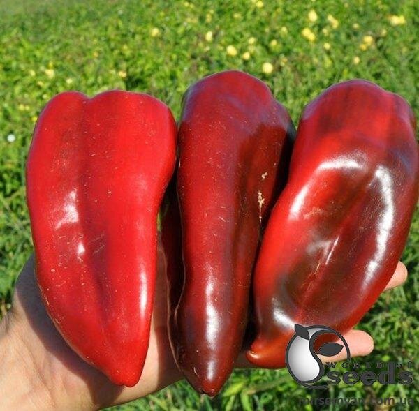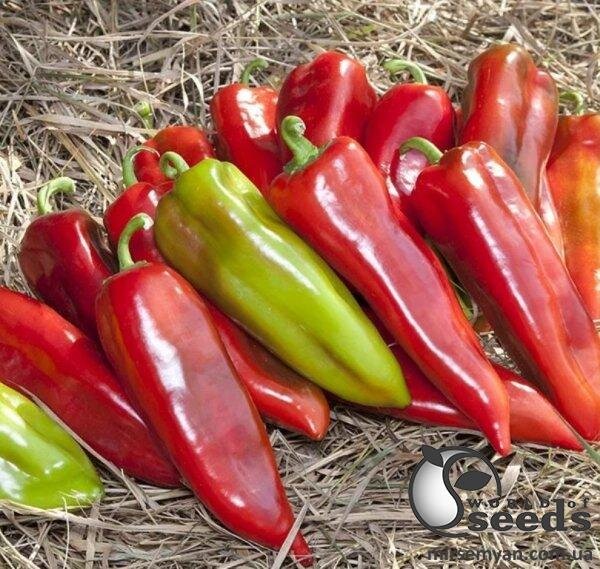 Призначення: для вирощування у плівкових тунелях, відкритому ґрунті. Ідеальний для свіжого ринку та переробки, використовується в соліннях. Якість плода: 140-160 г. 16х7 см. Товста стінка. Темно-зелений, яскраво-червоний. Генетично стійкий до вершинної гнилі. Рослина: кущ середньопотужний, висота 55 см. Коренева система сильна, добре розвинена. Витримує загущену схему вирощування. Особливості: відмінні смакові якості! Високий та стабільний урожай.