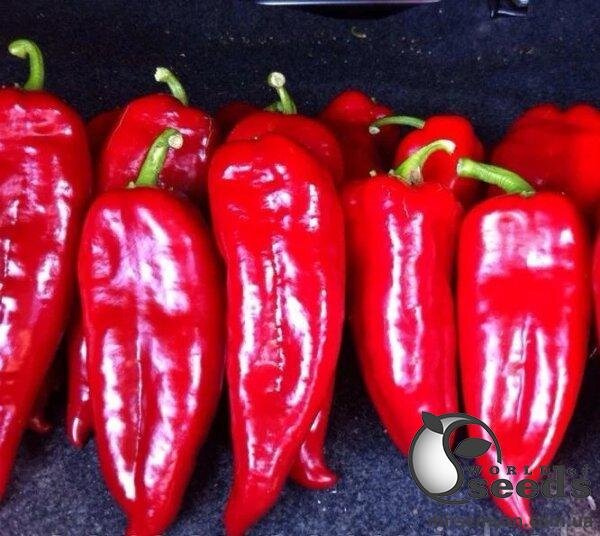 - однорідно дозрівають плоди конічної форми, досягають у довжину аж 24 см; n - вага дозрілого перцю 180 грам (дуже велика); n - перехідні плоди від зеленого до темно-червоного кольору; n - товщина стінок плодів до 8 см;
