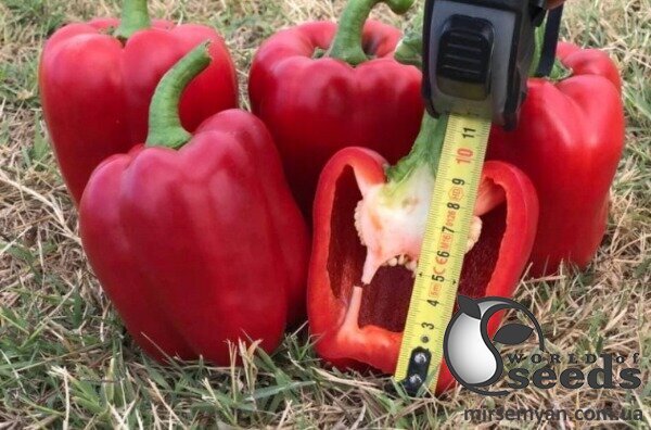 Перець Крімсон Кінг F1. Виробник Нідерланди Hazera. Високоврожайний гібрид солодкого кубовидного перцю голландської селекції. Потужна рослина, напіввідкритого типу вирощується у відкритому ґрунті та у тепличному приміщенні. Насіння перцю Кримсон Кінг F1 висівають у касети для розсади. Здорова та міцна розсада – це запорука високого врожаю. Рослина потужна, зав'язує та утримує 11 – 12 плодів одночасно. Перці великі та важкі завдяки товстій стінці 10 мм. Середня маса плоду 250 – 300 г. Габарити плоду 10х11 см. Колір перцю Кримсон Кінг F1залежно від стиглості змінюється від темно-зеленого до темно-червоного. Насіння перцю Кримсон Кінг F1 упаковане виробником по 250 насінин.