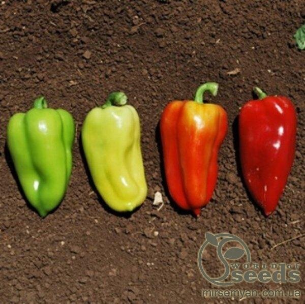Арон F1 Середня маса плода 150-200 г Довжина 10-13 см, діаметр 6,0-7,0 см, товщина стінки 5-7 мм Стійкість: ТМV0 Високоврожайний ранньостиглий гібрид солодкого перцю конічної форми. Призначений для вирощування у плівкових тунелях та відкритому грунті. Рослини напіввідкритого типу із добре розвиненим листовим апаратом. Плоди дуже однорідні, трикамерні, досить солодкі, підходять для реалізації на новий ринок та переробки. У технічній стиглості перець темно-зеленого кольору, у біологічному - яскраво-червоного. Добре транспортується, має тривалий період зберігання.
