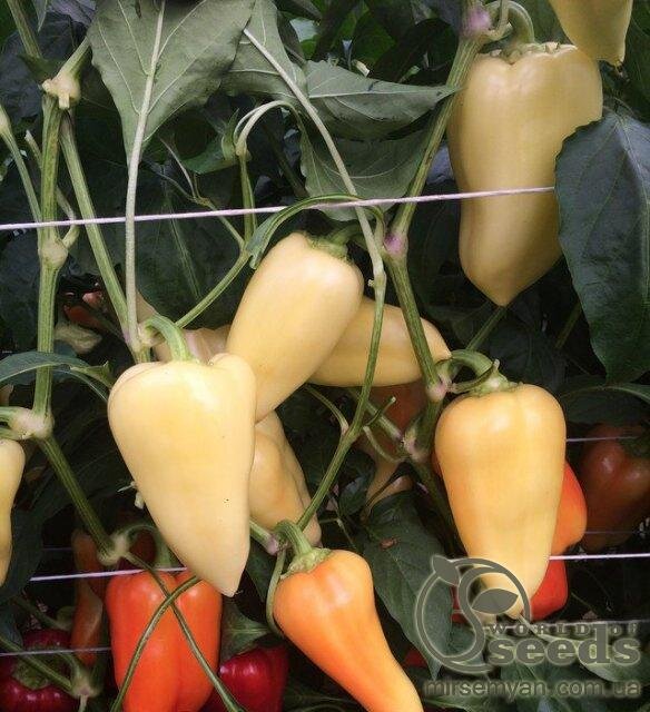 Хаски F1 (Khaski) насіння перцю конічного білого Новий Дуже ранній та високо врожайний гібрид білого конусоподібного перцю. Вирізняється високою інтенсивністю віддачі раннього врожаю, а також унікальною якістю плодів. Дозрівання плодів настає вже за 55 днів від висадки розсади. Потужна, компактна рослина з потужною кореневою системою, що добре переносить стресові ситуації. Плоди характеризується відмінною щільністю та транспортуванням. Розмір плодів 6х12см, товщина стінки 6-7 мм. Колір плодів у технічній стиглості - білий, у біологічному - насичено-червоний, з привабливим блиском. Вирівняні, товстостінні плоди на продязі всього вегетаційного періоду. Для вирощування у відкритому ґрунті та плівкових теплицях. Стійкий до вірусу тютюнової мозаїки рас0-2 та чорної бактеріальної плямистосі рас1-3.