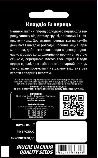 Nunhems netherlands Упаковка МініТермін дозрівання РаннійКолір Червоний ЗеленийВиробник NunhemsПерець "Клаудіо" F1, 8 семена L (Нунемс / Nunhems)