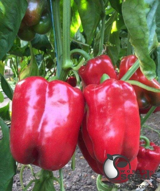 Червоний кубічний перець із періодом вегетації 78 – 80 дн. для одержання валової продукції. Кущ рослини облистяний, плоди досить вкриті. Оптимальна густота рослин на га 50 тис. рослин. Плоди товстостінні, товщина стінки 10 мм, вага плодів 250 - 350 грам. Плоди перцю стійкі до розтріскування. Основна маса плодів правильної форми, чотирикамерні. Універсальний підходить для вирощування у відкритому та закритому ґрунті. Раніше від конкурентів на 5 – 7 днів.