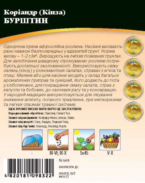 World of Seeds ukraine Упаковка МініКолір ЗеленийВиробник World of SeedsКінза, (коріандр) Бурштин 20г. WoS