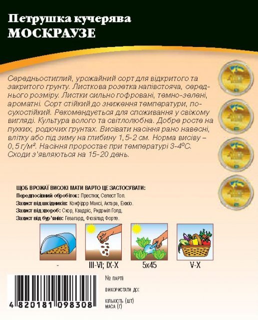 World of Seeds ukraine Упаковка МініТермін дозрівання Середньоранній СереднійКолір ЗеленийВиробник World of SeedsПетрушка Москраузе 10г. WoS