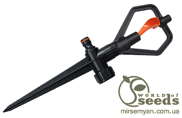 Зрошувач обертається "MOTYL", на пластиковому кілочку. Можливе послідовне підключення з іншими зрошувачами. Область зрошення ∅12 м