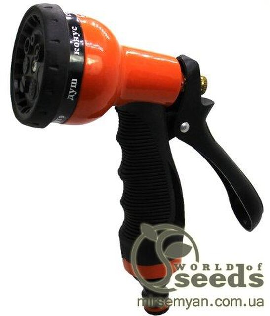 Пістолет металевий багатофункціональний кріпиться на кінці садового шланга і служить для перетворення водяного струменя з потужного та жорсткого напору на різні типи струменя залежно від бажаного. За допомогою пістолета для поливу легко візуально відстежувати напрямок поливу та регулювати дозування води – для припинення подачі води достатньо відпустити спусковий гачок. Забезпечується плавне регулювання струменя від жорсткого точкового до м'якого туману.