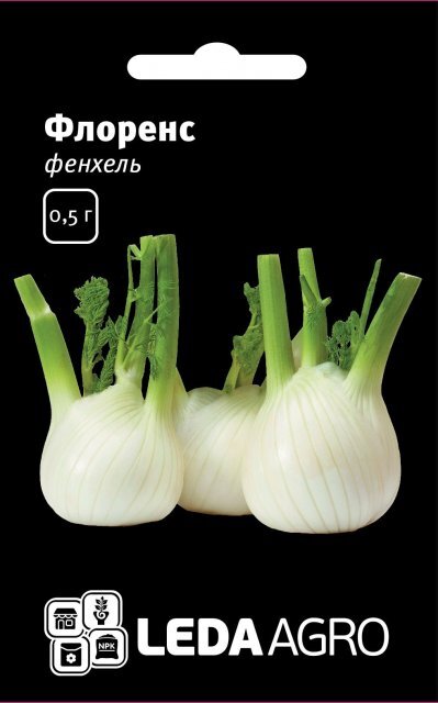 Фенхель "Флоренс", Багаторічна трав'яниста рослина. На вигляд нагадує кріп, цибулини на основі стебла мають хрумку текстуру з ароматним солодким смаком десь між анісом і селери. Декоративні рослини. Використовуйте стебла та листя дрібно нарізані в салати. Цибулини також споживають у вареному вигляді. Насіння використовують як пряність, для ароматизації ковбас, кондитерських та хлібобулочних виробів, напоїв. Також фенхель часто додають при засолюванні огірків та томатів.