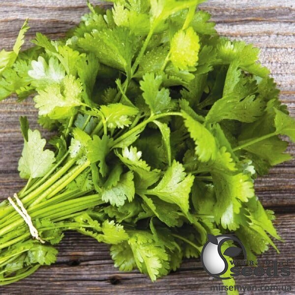 Коріандр Маріно формує сильну, швидкозростаючу рослину зі слабким розгалуженням і масою близько 25 г. Листя розсічене, зеленого кольору, середніх розмірів. Зелень вживається у свіжому та сушеному вигляді, використовується для приготування страв та випічки, додається до домашніх заготовок. 45 днів;&