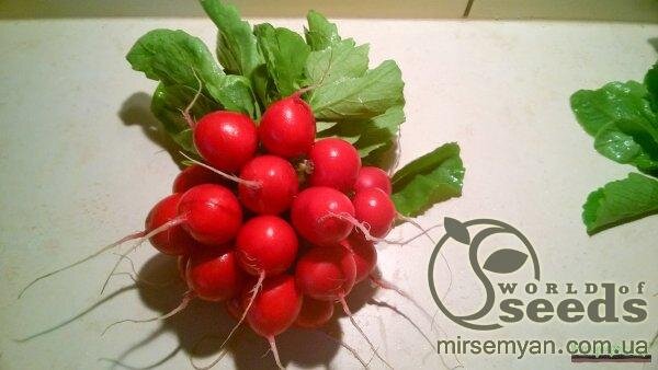 Гарні, яскравого кольору, вирівняні коренеплоди кулястої форми Високий урожай — до 4 кг/м2 у лютому–березні Придатний для вирощування в умовах недостатнього освітлення Короткий листовий апарат Стійкий до стійкості бадилля Вегетаційний період, днів від посіву 23–25–25 Додаткова інформація: Для вирощування в теплицях, під укриттями та у відкритому грунті. Можливий посів у касетах.