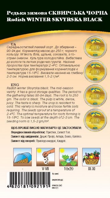 World of Seeds ukraine Упаковка МініТермін дозрівання Середньоранній СереднійКолір ЧервонийВиробник World of SeedsРедька Сквірська чорна 3г. WoS