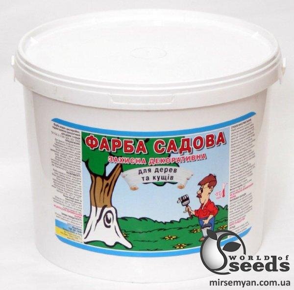 Фарба для садових дерев замінює вапно, володіючи більш ефективними властивостями. Фарба садова містить протигрибкові та протимікробні добавки, що перешкоджають проростанню спор мікроорганізмів.