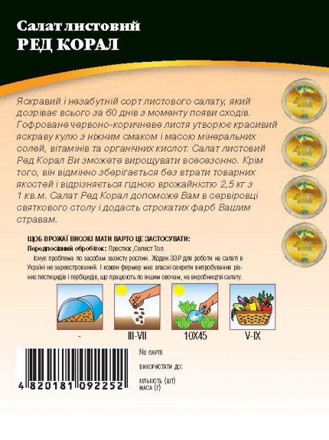 Насіння салату Ред Корал 3 г. WoS