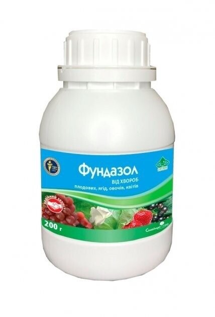 Фунгіцид Фундазол - універсальний системний фунгіцид для захисту культур від хвороб. Механізм дії: діюча речовина зупиняє розвиток патогенних клітин у рослині, тим самим захищає від захворювання та лікує одночасно рослину. Форма препарату: порошок, що змочується (СП) Діюча речовина: Беноміл 500 г/кг Класифікація ВООЗ: III клас (помірно токсичний) Площа обробки 200 г. - 20 сотки. Упаковка: 10 г, 200 г