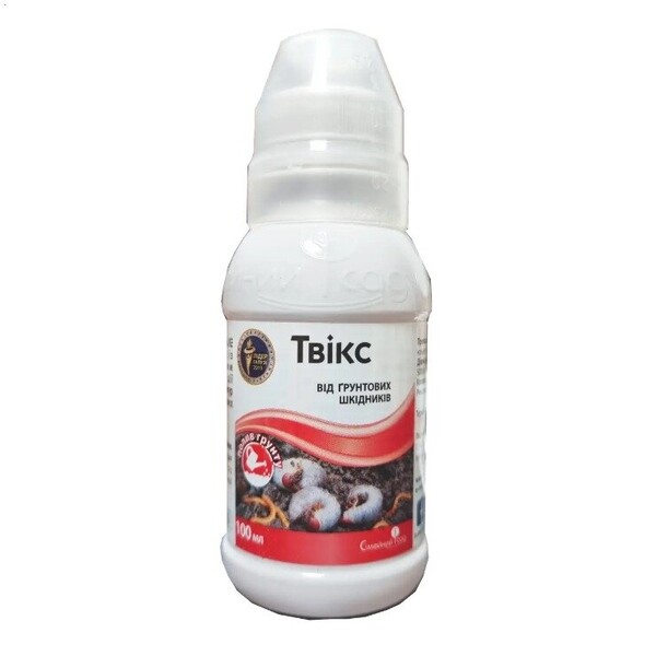 Інсектицид Твікс (Грунтовий) 100 мл — це засіб, призначений для захисту рослин від ґрунтових шкідників. Цей хімічний препарат ефективно бореться з широким спектром комах, які ушкоджують кореневу систему рослин, забезпечуючи їх здоровий ріст і розвиток.