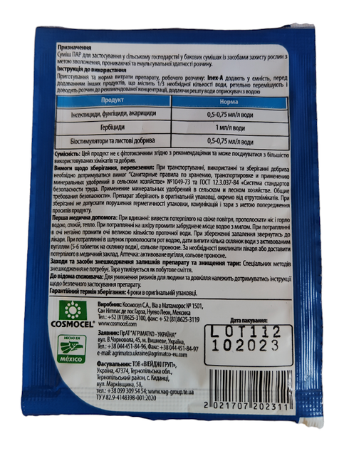 COSMOCEL (Mexico) mexico Тип іншеУпаковка МіниВиробник COSMOCEL (Mexico)Прилипач-ад'ювант, антивспінювач INEX-A / Інекс-А 10 мл