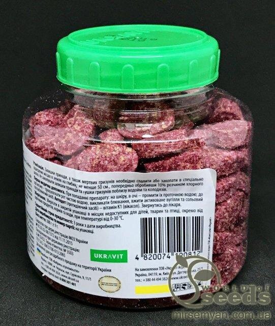 Тип Родентициды и средства против насекомыхУпаковка МіниВиробник UkravitДія КонтактнийКапкан (брикет) 300 г< Приманку розміщують по периметру об'єкта або в шаховому порядку в місцях, де спостерігається активність гризунів: під укриттям, вздовж стін, перегородок, біля нір та ходів, у місцях накопичення та зберігання сміття або харчових відходів, біля джерел води. Приманку закладають безпосередньо в нори з подальшим засипанням землею, або в пристосованих для цього ємностях: контейнерах з картону, пластику, жерсті, в лотках, обрізках труб, ящиках тощо. Краще використовувати спеціальні контейнери для розміщення отруйних приманок - це підвищує ефективність дератизації, запобігає доступу до приманки сторонніх осіб, нецільових тварин, птахів. у місцях накопичення та зберігання сміття або харчових відходів, біля джерел води. Приманку закладають безпосередньо в нори з подальшим засипанням землею, або в пристосованих для цього ємностях: контейнерах з картону, пластику, жерсті, в лотках, обрізках труб, ящиках тощо. Краще використовувати спеціальні контейнери для розміщення отруйних приманок - це підвищує ефективність дератизації, запобігає доступу до приманки сторонніх осіб, нецільових тварин, птахів. у місцях накопичення та зберігання сміття або харчових відходів, біля джерел води. Приманку закладають безпосередньо в нори з подальшим засипанням землею, або в пристосованих для цього ємностях: контейнерах з картону, пластику, жерсті, в лотках, обрізках труб, ящиках тощо. Краще використовувати спеціальні контейнери для розміщення отруйних приманок - це підвищує ефективність дератизації, запобігає доступу до приманки сторонніх осіб, нецільових тварин, птахів.