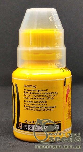 Інсектицид Разіт має високу активність до абсолютної більшості комах-фітофагів з різних систематичних груп, включаючи скритноживучих шкідників.