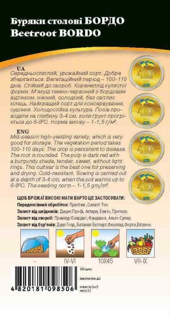 World of Seeds ukraine Упаковка МініТермін дозрівання СередньораннійКолір Червоний БордовийФорма плоду КруглийВиробник World of SeedsБуряк столовий Бордо 3г. WOS