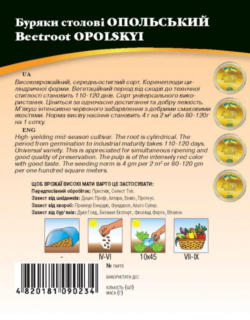 World of Seeds ukraine Упаковка МініТермін дозрівання СередньораннійКолір ЧервонийВиробник World of SeedsБуряк столовий Опольський 20г. WoS