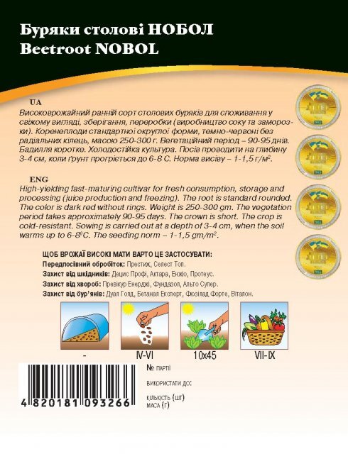 World of Seeds ukraine Упаковка МініТермін дозрівання РаннійКолір ЧервонийВиробник World of SeedsБуряк столовий Нобол 20г. WoS
