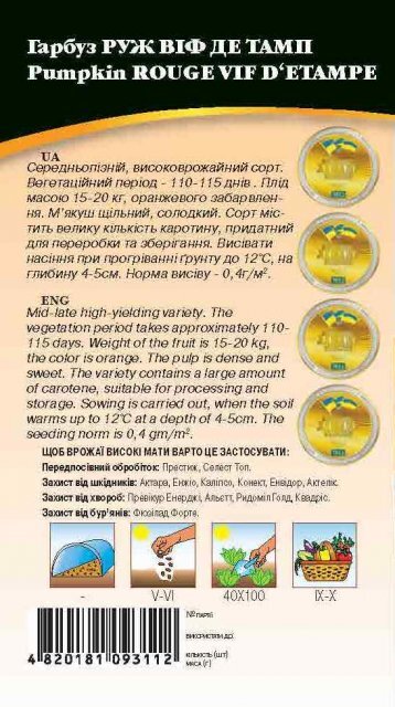 World of Seeds ukraine Упаковка МініТермін дозрівання СередньораннійКолір ЧервонийВиробник World of SeedsГарбуз "Руж Віф Де Тамп" 3 г. WoS