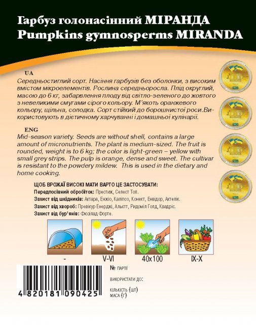 Гарбуз сорт "Міранда" 10г. WoS