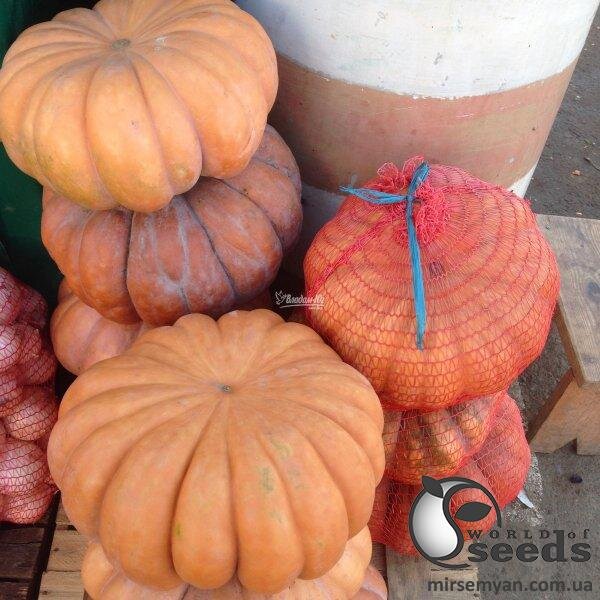 Ексклюзивний сорт французького гарбуза. Термін дозрівання – 120 днів. Плід вирівняний, гарний, ребристий, з оранжево-коричневою поверхнею. Гарбузи досить великі (в середньому 8-10 кг), у них товста стінка, а м'якоть ароматна і дуже солодка! Плоди яскраво-жовтогарячі як усередині, так і зовні. До всіх достоїнств потрібно додати високі показники при тривалому зберіганні. Сухих речовин у плоді близько 10%! Насіння гарбуза дає дуже високий урожай на багатих ґрунтах! Овочі надзвичайно корисні для здоров'я, особливо чоловічого. Гарбуз універсальний у використанні – підходить для свіжого ринку та для різних видів переробки.