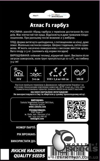 Упаковка МініТермін дозрівання РаннійКолір ПомаранчевийФорма плоду ЦиліндричнийВиробник SAKATAГарбуз Атлас F1 (Баттернат) 5 семена Л